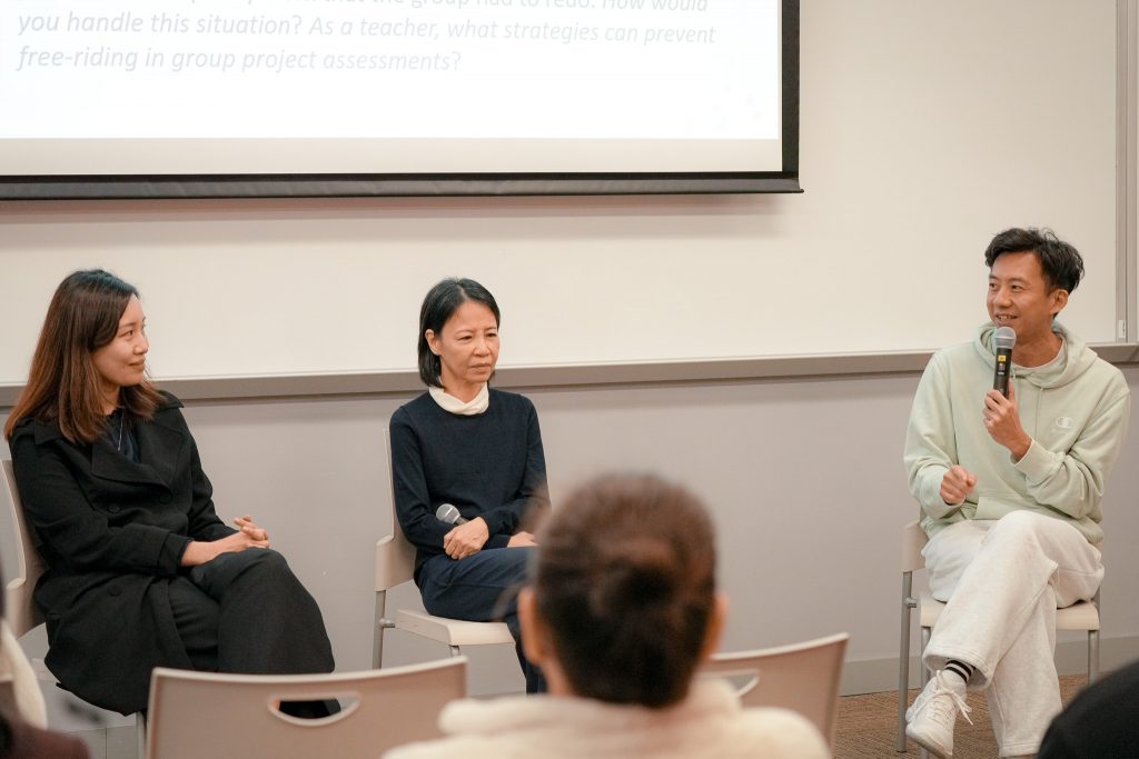 Together with workshop facilitators Dr Christine Choy (Associate Director (Teaching and Learning Enhancement), Centre for Teaching and Learning, HSUHK) and Dr Wong Muk Yan (Director of Common Core Curriculum, HSUHK), Dr Lam led thought-provoking discussions on the potential tensions between learner-centred and standardisation-centred approaches, as well as the constraints and possibilities of different assessment and instructional methods. Dr Lam also provided practical advice and shared personal examples of facilitating collaborative activities and designing effective assessments that encourage students’ critical thinking and self-directed learning.