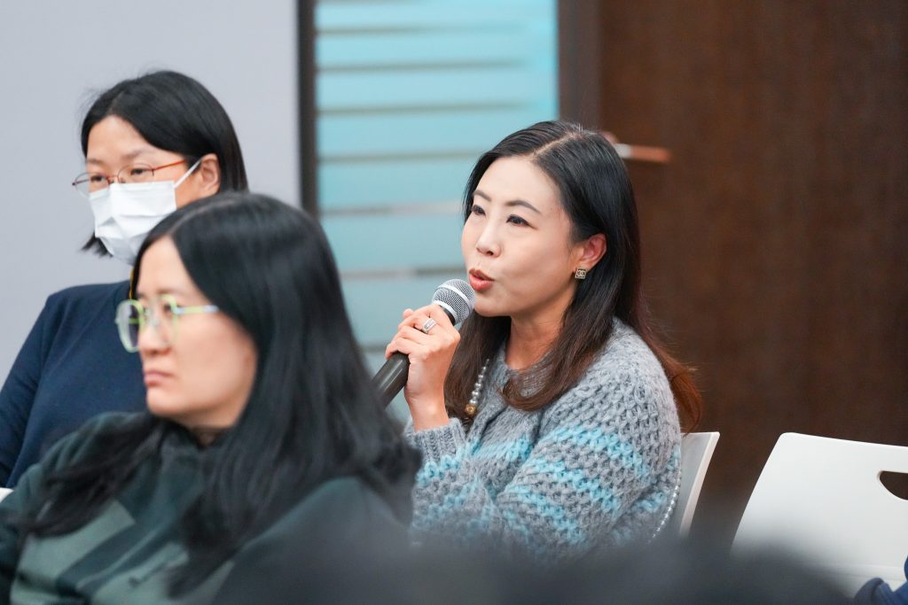 The facilitators, Dr Christine Choy and Dr Wong Muk Yan, engage in a dynamic discussion with the speaker, Dr Lam Bik Har, involving the participants.