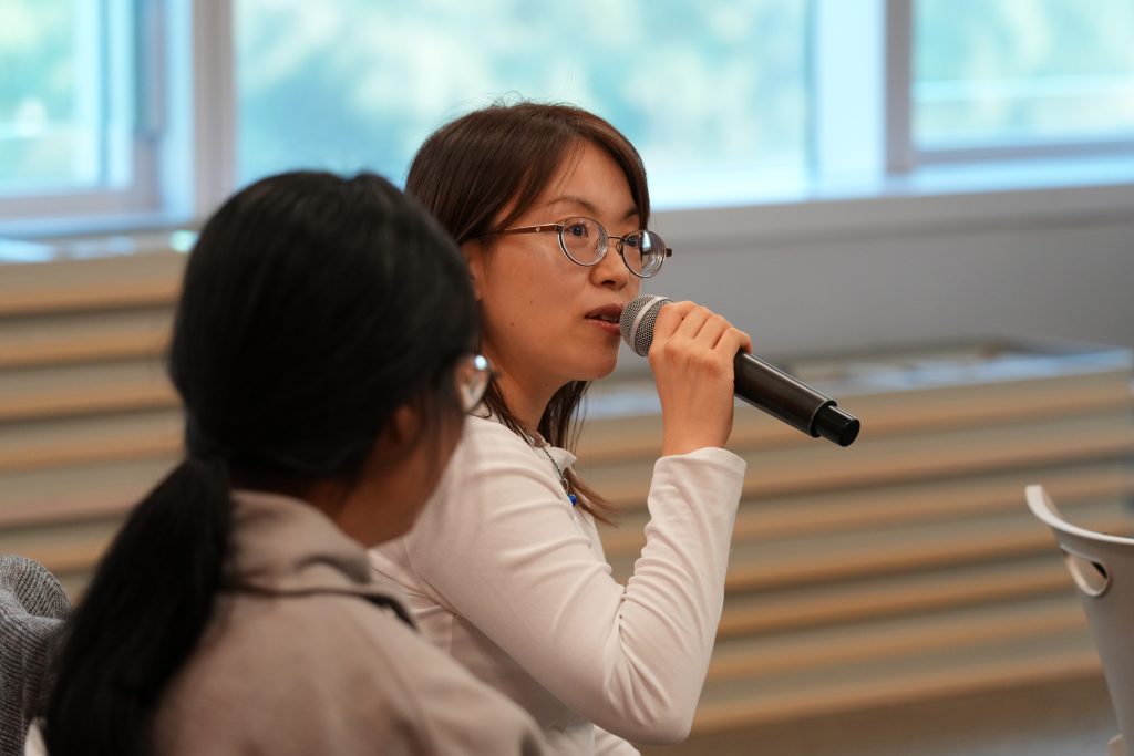 The participants engage with the speaker and facilitators sharing their views on the potential tensions between learner-centred and standardisation-centred approaches.